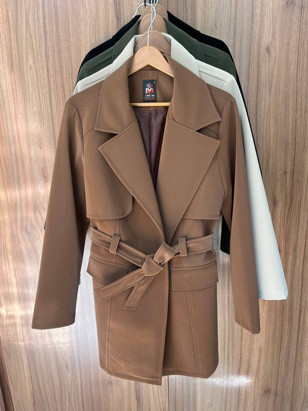 کت چرم زنانه کمربندی شیک – قد ۸۵، مناسب سایز ۳۸ تا ۴۶