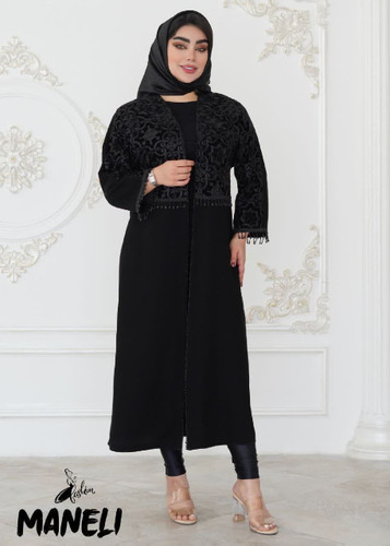 مانتو جلوباز مشکی کلاسیک مدل نوارا